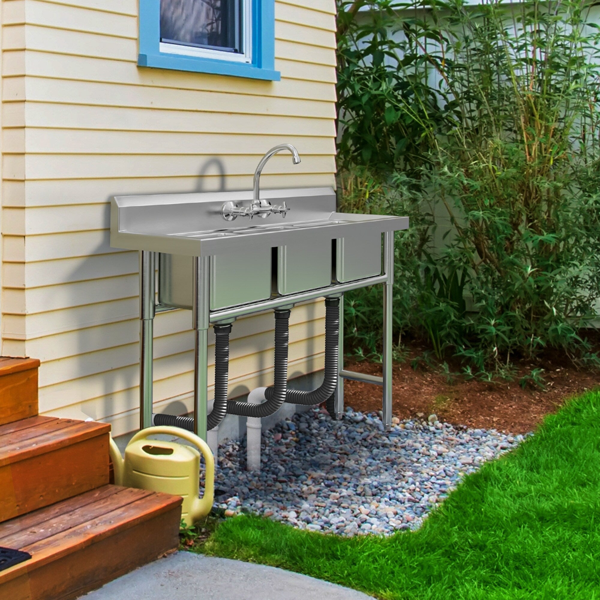 Kitchen Sink Stainless Steel Compartment Bowl Freestanding Commercial Sink